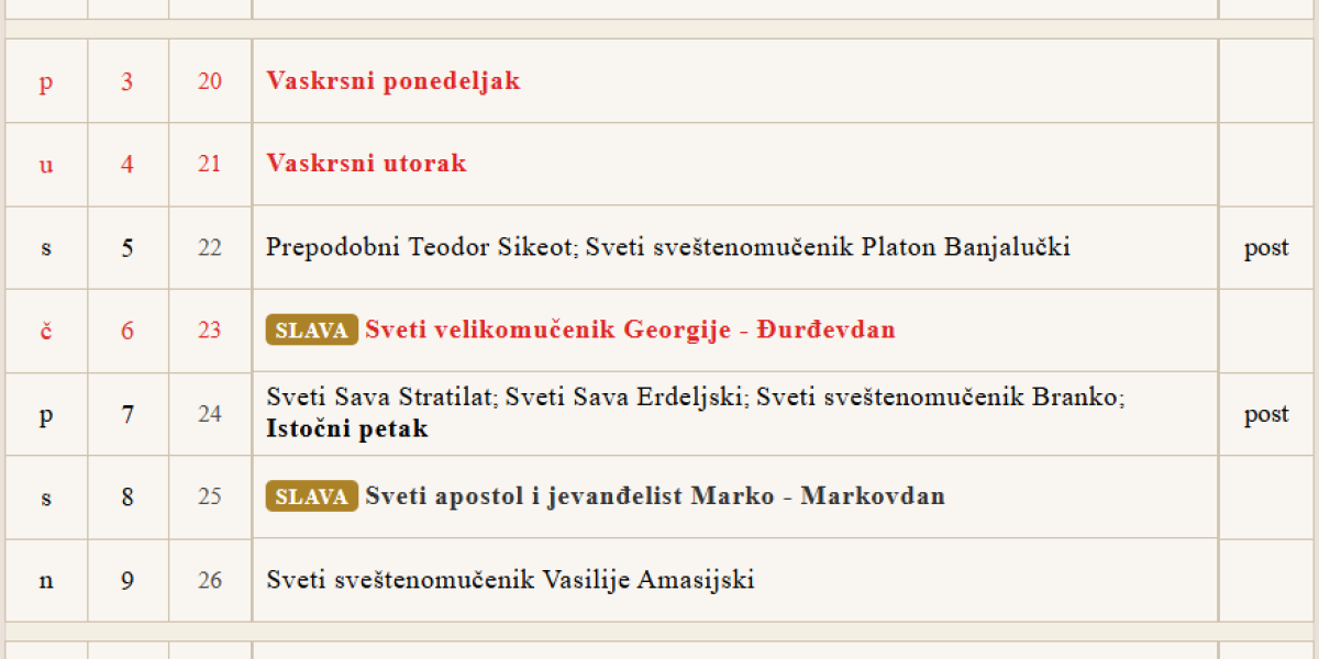 3. maj (Ponedeljak) Vaskršnji ponedeljak - Neradni dan