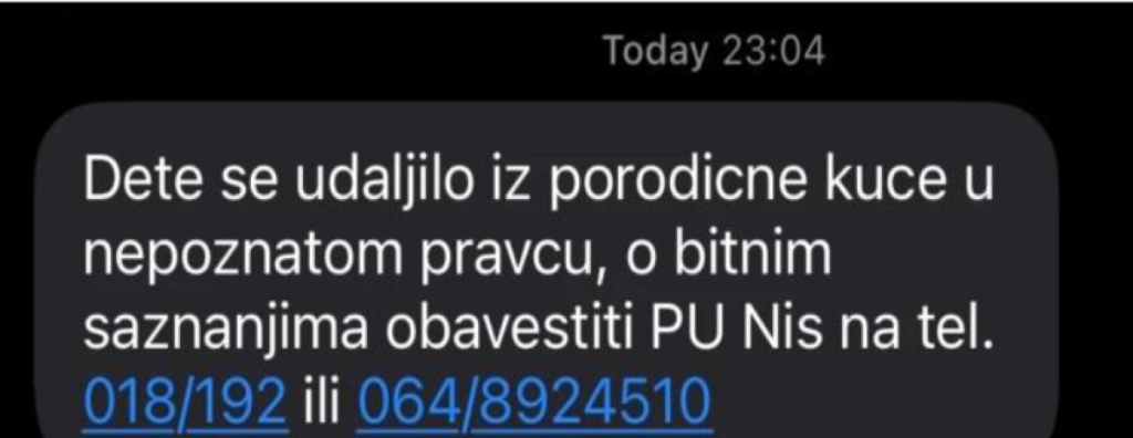 🔔 Šestogodišnji dečak iz Niša (april 2026): Ovo je četvrti put da je javnost alarmirana putem SMS poruka, prekida TV programa i obaveštenja na auto-putevima.