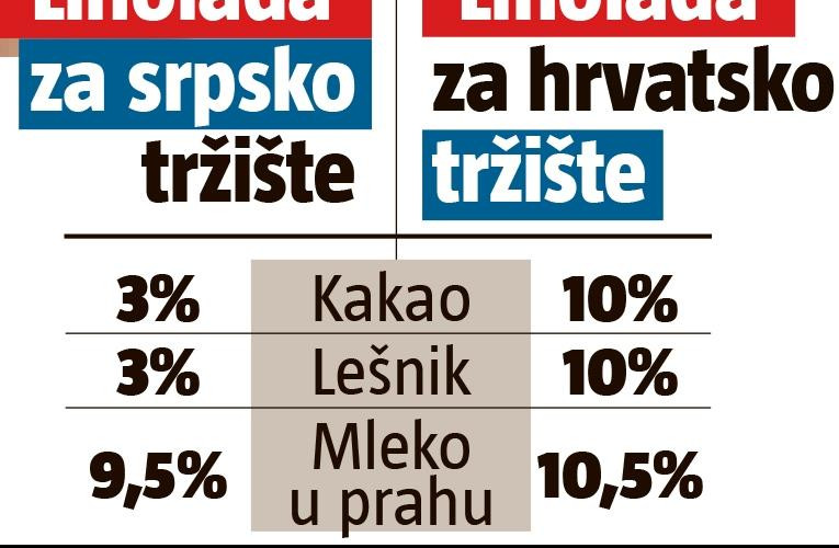 Hrvatska "Podravka" na srpskom tržištu prodaje škartiranu verziju svog poznatog krema "linolade", koja sadrži čak tri puta manje lešnika nego ona namenjena potrošačima u Hrvatskoj!