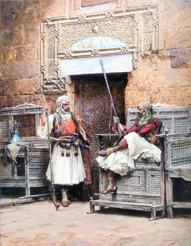 Početna cena "Dva bašibozuka pred kapijom", dela nastalog između 1887. i 1888. godine, nevelikog formata (43 puta 50 centimetara), rađenog tehnikom ulja na drvetu, na aukciji za dela orijentalista bila je između 100.000 i 150.000 funti, odnosno 113.000 i 170.000 evra.