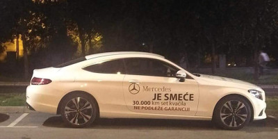 Iznervirani vlasnik novog "mercedesa" kupea C klase, čija je cena između 40.000 i 56.000 evra u zavisnosti od opreme i motora, očigledno nije uspeo da ostvari prava na garanciju, pa je rešio da čuvenu kompaniju "počasti" najgorom reklamom svih vremena.