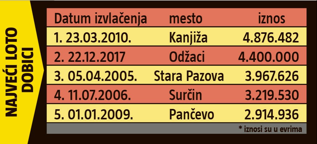 Srbiju trese žestoka loto groznica! Glavna premija, sedmica, nije izvučena gotovo devet meseci i, ukoliko je neko dobije u sutrašnjem izvlačenju, biće bogatiji čak za 3.750.000 evra (od čega se oduzima 20 odsto poreza), što je četvrti najveći dobitak u istoriji.