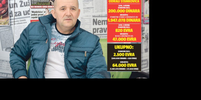 - Odmah su mi rekli da je zajam od 200.000 dinara narastao na 500.000 zbog kamata i ostalih troškova. Kada sam pitao izvršitelja Gorana Pavlenskog kako je moj dug uspeo da naraste dva i po puta za nekoliko godina, rekao mi je da ne zna, ali da novac moram da vratim kako znam i umem. Planirao sam da vratim dug, ali su mi rekli da to moram da učinim u roku od 20 dana. Međutim, nisam uspeo da za tako kratko vreme sakupim toliki novac, pa su došli da mi plene imovinu. I ne samo to, rekli su mi da je moj dug, u međuvremenu, za nepune tri nedelje, narastao sa 500.000 na 900.000 dinara. Zamislite u kakvom sam se šoku našao - kaže Stanković i dodaje da su mu izvršitelji popisali sve što su zatekli u kući: