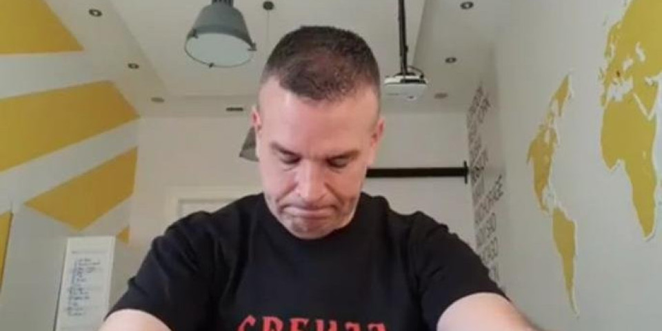 Poljubio je grb na svojoj majici i naklonio se, dok se u pozadini čula pesma Baje Malog Knindže "Pevaj Srbijo"