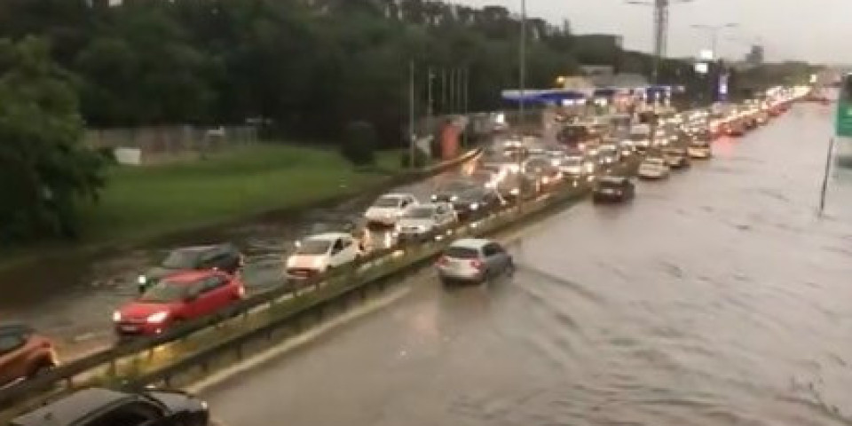 Sve potpuno potopljeno. Vozači snastoje da što pre izađu iz reke koja se stvorila na autoputu.