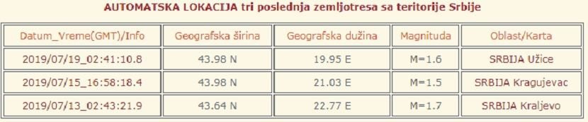 Osim toga, 10. jula u 11.28 časova po lokalnom vremenu registrovan je zemljotres magnitude 2.3 jedinica Rihterove skale u regionu mesta Despotovac.