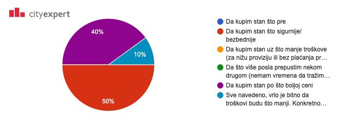 Sa druge strane 60% kupaca se izjasnilo da im je bitno koja agencija za nekretnine oglašava stan koji su primetili u moru oglasa na internetu, jer im je najbitnije da izvrše bezbednu kupovinu nekretnine i da budu sigurni da se neće susretati sa problemima tokom i nakon kupovine. Dakle, svaka agencija za nekretnine prvenstveno mora da stekne poverenje od strane kupaca. Na drugom mestu, odnosno 40% ispitanih kupaca su se izjasnili da im je prilikom kupovine cena bila najbitniji faktor. Ova informacija može poslužiti vlasnicima nekretnina za prodaju, da prilikom definisanja cene nekretnine uzimaju u obzir i to koliko je ta vrednost veća od proceniteljske vrednosti i da se potrude da opravdaju tu razliku kako bi kupac imao jasniju sliku.
