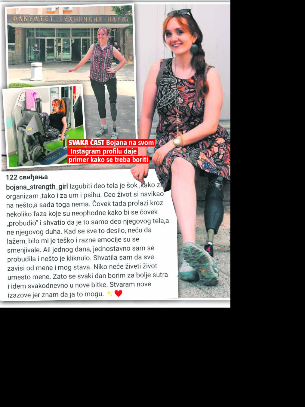 - Sve na šta sam navikla u sekundi je nestalo. Život mi se promenio iz korena, ali sam iz nesreće koja mi se dogodila dosta toga i naučila. Brojne operacije prebrodila sam uz porodicu i prijatelje. Uz njih mi je sve bilo lakše, a bez njihove ljubavi i podrške ne bih uspela da se uzdignem, vratim osmeh na lice i ponovo postanem ona stara, devojka puna života. Išla sam dan po dan i gurala napred zbog svoje porodice, prijatelja, zbog sebe... Da, život mi je sada dosta drugačiji, ali ga volim baš takvog kakav jeste!