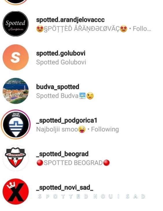 Zavisno od toga u kom gradu je osoba primećena, ova poruka se šalje "spotted" profilu tog grada ("spotted_beograd", "spotted_aranđelovac", "spotted_šabac" i slično...)