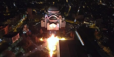 Neverovatni prizori večeras snimljeni su ispred Hrama Svetog Save. Naime, na platou ispred Hrama veliki plameni krst objasjao je Vračar