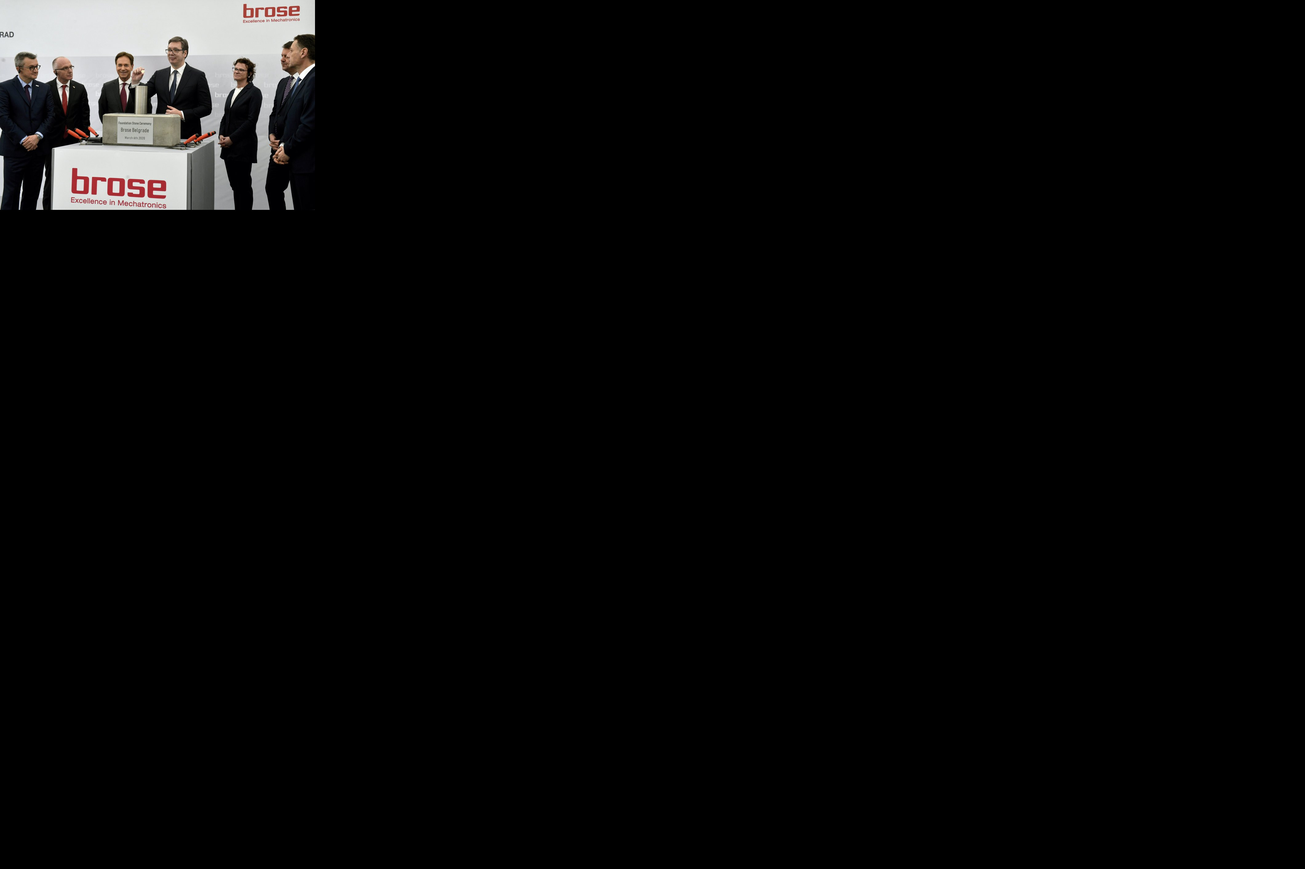 Predsednik Srbije Aleksandar Vučić prisustvovao je ceremoniji polaganja kamena temeljca za izgradnju fabrike i razvojnog centra kompanije Brose u Pančevu