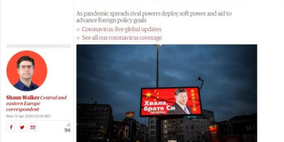 Informerov bilbord zahvalnosti predsedniku Siju, britanski Gardijan vidi kao simbol oduševljenja građana i vlasti u Srbiji zbog nesebične i velike pomoći Kine našoj zemlji u borbi protiv korone.