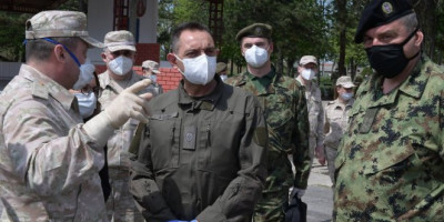 Ministar odbrane Aleksandar Vulin danas je sa general-majorom Mihailom Černišovim obišao dezinfekciju kasarne "General Pavle Jurišić Šturm" u Požarevcu, koju su zajedno izvršili mobilni timovi jedinica atomsko-biološko-hemijske odbrane Vojske Srbije i vojni stručnjaci ABHO jedinica Oružanih snaga Ruske Federacije angažovani na sprovođenju mera u cilju sprečavanja širenja virusne infekcije Kovid-19.