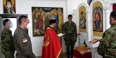 - Patrijarh Pavle je rekao "Čega da se bojimo, ako smo s Bogom, a ako nema Boga, čemu da se nadamo?" Osvetivši danas ove slavske darove, prelomivši slavski kolač, pokazali smo da i mi možemo da proslavimo slavu u najtežim vremenima kada su naš narod i naša vojska izloženi pošasti koja je zavladala u celom svetu. Neka Gospod blagoslovi i sačuva Vojsku Srbije, našu državu i naš narod - rekao je potpukovnik Vlajić.