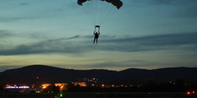 Kapetan Mladen Stamenković, komandir čete za obuku padobranaca u 63. padobranskoj brigadi, sinoć je bio u ulozi rukovodioca padobranskih skokova.