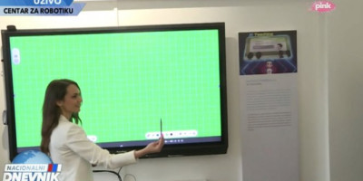 Devojka koja je pokazivala sve funkcije interaktivne table pozvala je predsednika Vučića da isproba kako funkcioniše inovativno nastavno sredstvo.