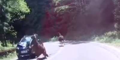 Dva odbegla konja, napravila su pravu pometnju na putu, kada je jedan od njih, prilikom ulaska u krivinu, naleteo na automobil koji je dolazio iz suprotnog pravca. Na veliku sreću svih aktera, vozač automobila je prethodno pre ulaska u krivinu usporio, a jedan od konja mu se čitavom dužinom našao na haubi i šoferšajbni. Nakon sudara, konj je nakratko završio na zemlju, ali se ubrzo pridigao i pobegao dalje svojim putem, dok su vozač automobila, njegov saputnik, kao i motorciklisti koji su i slučajno snimili sve, ostali u šoku.