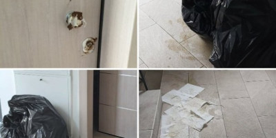Vrhunac je današnji događaj kada je jednom stanaru ulazna vrata od stana namazao govnima kao njegov odgovor. Zvali smo policiju i čekamo da dođe - kaže uznemireni upravnik zgrade.