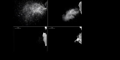 Kolaž snimaka objavljen uz istraživanja ilustruje koliko različite maske (jednoslojne, dvoslojne i hirurške) spečavaju širenje kapljica iz nas u odnosu na to kada ne nosimo masku.