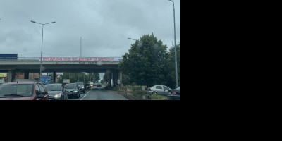 - Četvrt veka boli traju, zbog Krajine ne prestaju - ispisano je crvenim slovima na batajničkom nadvožnjaku.
