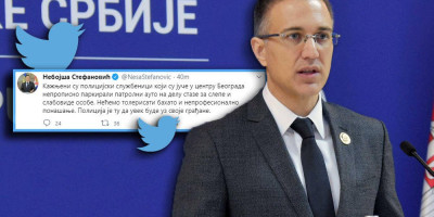 - Kažnjeni su policijski službenici koji su juče u centru Beograda nepropisno parkirali patrolni auto na delu staze za slepe i slabovide osobe. Nećemo tolerisati bahato i neprofesionalno ponašanje. Policija je tu da uvek bude uz svoje građane - napisao je Stefanović.