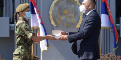 Najboljima u generaciji rezervnih oficira Vojne akademije, rezerevnom potporučniku Urošu Jovanoviću (9,78), rezervnom potporučniku Stefanu Arizanoviću (9,67) i rezervnom potporučniku Nataši Živanović (9,44), ministar Vulin uručio je ručne časovnike sa posvetom.