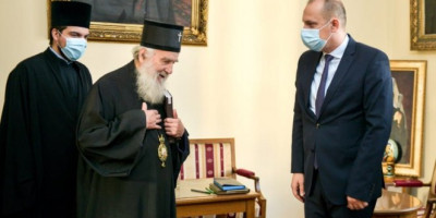 Lončar i patrijarh Irinej razgovarali su danas u Patrijaršiji, a sastanku je prisustvovao i direktor Klinike za infektivne i tropske bolesti Goran Stevanović.