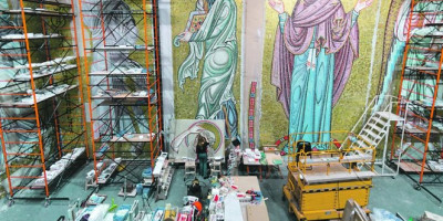 Izrada i postavljanje mozaika svakako su bili izuzetno veliki izazov, tako da su već 2016. radnici počeli da „pripremaju teren" za dolazak ruskih umetnika.