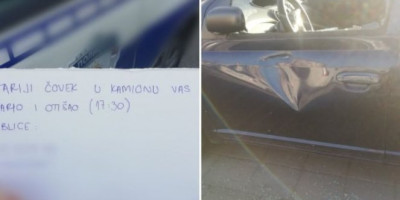 Prozor je bio razbijen u paramparčad, cela vozačeva strana ulubljena i dok se žena čudila kako je moguće da neko tako udari automobil i ode, ugledala je parče papira.