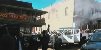 Na snimcima američkim medija moglo se videti kako velika kolona naših građana prvo dolazi u centar jednog američkog grada, a onda se vade puške i kreće pucnjava.