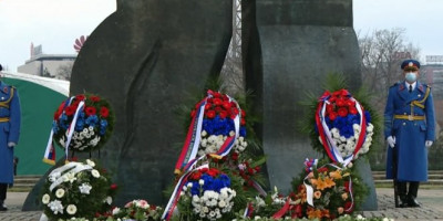 U svojstvu izaslanika predsednika Srbije Aleksandra Vučića venac je na Spomenik položila generalni sekretar predsednika Suzana Paunović.