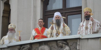 Pri izlasku iz Saborne crkve patrijarhu Porfiriju ruku su celivali vernici, a nakon toga je ušao u zgradu Patrijaršije.