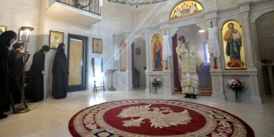 Liturgija je održana u manastirskoj zimskoj crkvi, udaljenoj oko dva kilometara od spomenika Kameni cvet koji je posvećen svim žrtvama koje su stradale od strane ustaša za vreme Drugog svetskog rata, a osim monaštva manastira koji broji osam monahinja, prisustvovala je nekolicina vernika.
