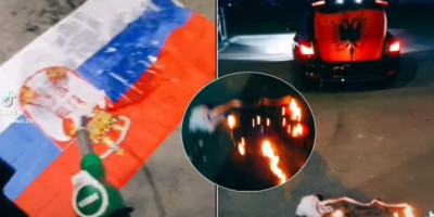 Navodno je sprska zastava uzeta sa jedne terase u Vranju, a nakon toga polivena benzinom sa pumpe, a potom i spaljena.
