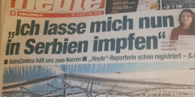 наслов на аустријским новинама Данас (Heute) не гласи "желим да се вакцинишем у Србији", већ "допусти ћу да ме вакцинишу само у Србији"