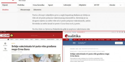 Srbija je sa više od 30 odsto potpuno vakcinisanog stanovništva treća u svetu i lider u regionu, dok je u Beogradu vakcinisan svaki drugi stanovnik. Slovenija je na drugom mestu sa 18 odsto potpuno vakcinisanih, zatim Hrvatska sa 12 odsto i Crna Gora na četvrtom mestu sa 11 odsto.