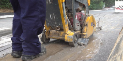Ali, kaću da je početak je najteži. Treba pažljivo ispratiti sve ono što je ucrtano u planu i iseći asfalt neobičnom mašinom koja seče asfalt, beton, armirani beton... Šta god joj se nađe na putu.