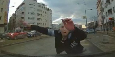 Kako je preneo portal NSuživo, za sada nepoznati muškarac pokušao je da iscenira nezgodu na Bulevaru kralja Petra i skočio je na haubu automobila.
