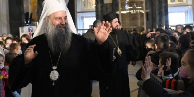 Patrijarh srpski Porfirije podelio je danas u Sabornom hramu Svetog Save na Vračaru 5.000 svetosavskih paketića učenicima nižih razreda beogradskih osnovnih škola