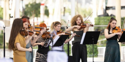 Violinista Stefan Milenković nastupio je danas ispred Paviljona Srbije na Svetskoj izložbi Ekspo u Dubaiju sa Gudačkom reprezentacijom mladih