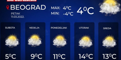 Najniža temperatura od -7 do -4, a najviša dnevna oko 4 stepena.