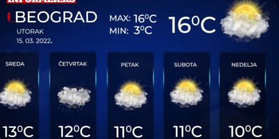 Jutarnja temperatura u glavnom gradu biće od minus 2 do 3, najviša dnevna oko 16 stepeni. U narednih sedam dana biće pretežno oblačno, mestimično s kišom, na visokim planinama i sa snegom, a dnevna temperatura biće u padu.