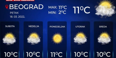 I u Beogradu ujutro i pre podne malo do umereno oblačno, od sredine dana pretežno sunčano. Vetar slab i umeren, istočni i jugoistočni.