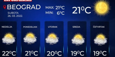 U Beogradu, posle svežeg jutra, tokom dana sunčano i toplo. Vetar slab, zapadni i severozapadni. Jutarnja temperatura od 4 do 6, a najviša dnevna oko 21 stepen.