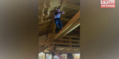- Đuričić je počeo da peva, zagrejao masu, a onda se izgubio iz našeg vidokruga. Odjednom, svi gosti su pogledali gore, "čovek greda" bio je na svojoj poziciji. Uz to, pevao je našu omiljenu pesmu, "Romaniju" - kaže Jelena Marković, naša novinarka.