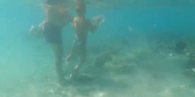 Na video snimku koji je zabeležila, jasno se vidi kako je dečaka ugrizla jedna od većih riba, zbog čega se uznemirio i počeo da se hvata za dedu, koji nije reagovao i nastavljao je da hrani sve veći broj riba koji se okupljao oko njih.