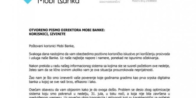 Direktor Mobi Banke objasnio je da se problem desio zbog optimizacije sistema koja je