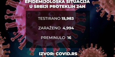 Na bolničkom lečenju je 711 pacijenata, od kojih su 33 na respiratoru, preminulo je 16 osoba, objavljeno je na zvaničnom sajtu Covid.rs.
