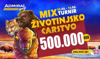 Nakon Srećne sedmice, u nastavku februara nas očekuje drugi od četiri nedeljna slot turnira – Životinjsko carstvo! Turnir traje od srede 8. februara do ponoći 14. februara, kada će 40 najboljih podeliti fantastičnih 500.000 dinara.