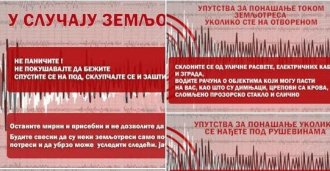 - Ostanite mirni i prisebni i ne dozvolite da vas obuzme panika. Budite svesni da su neki zemljotresi samo početni potresi i da ubrzo može uslediti sledeći, jači potres - navode oni.